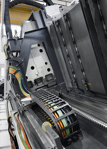 适用于稳定、精确且灵活的钻孔和铣削操作。最高功率可达80 kW,扭矩630 Nm,转速10000 rpm。标配密封空气系统,内部高压冷却液压力最高40 bar,外部最高14 bar,并配备14.00升纸带过滤系统(可选80 bar配置)。B轴可在任意角度使用,或通过分度功能以2.5°为步进调整。